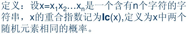 Σ(fi * (fi-1))/N(N-1) :fi 代表樣本中某個字母出現的比率,N代表字母出現在樣本中的個數