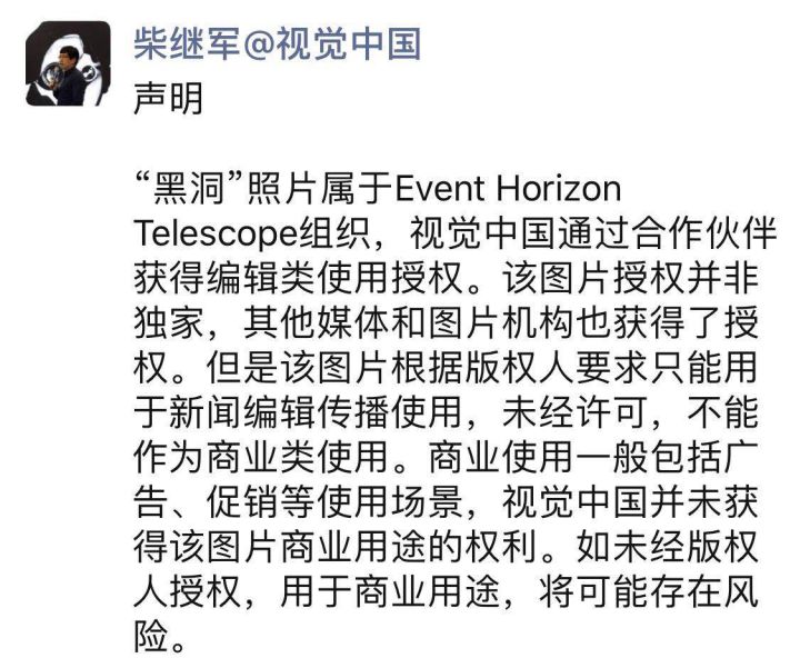 而你如果將這張黑洞圖片作為商業使用,可能存在風險。