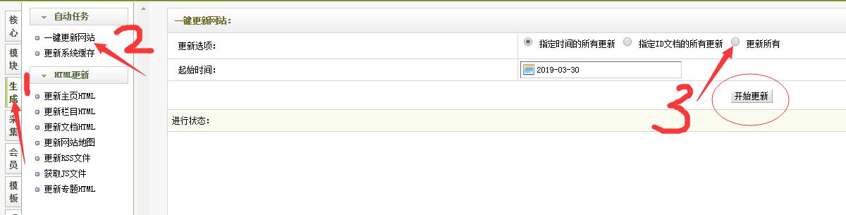 (注):到這一步網(wǎng)站就基本安裝完成了,到這一步只要后臺點擊“生成”按鈕,把上圖的五項從上往下全部生成過就可以了!