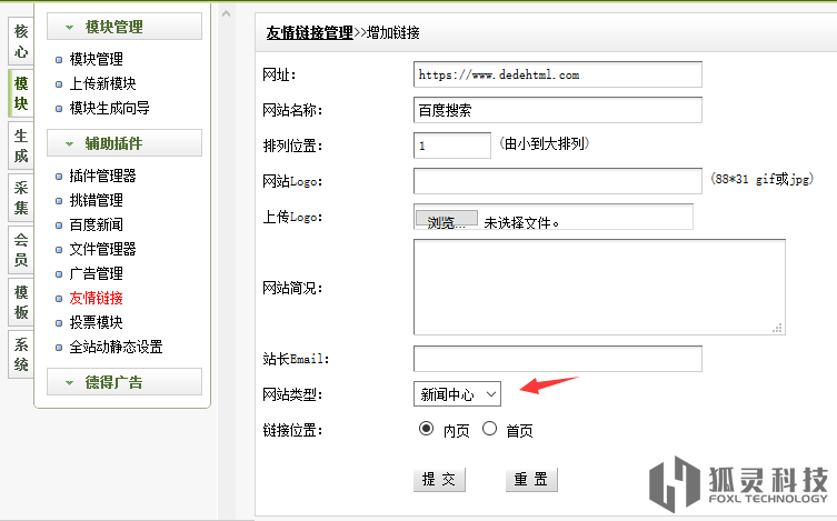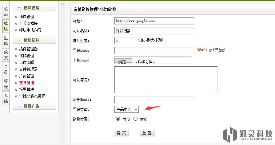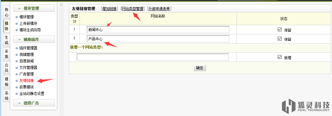 友情鏈接里的網(wǎng)站類型管理是這樣的