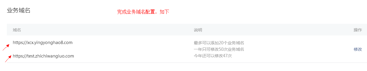 一個(gè)小程序最多可以添加 20 個(gè)業(yè)務(wù)域名,且一年只可修改 50 次業(yè)務(wù)域名。