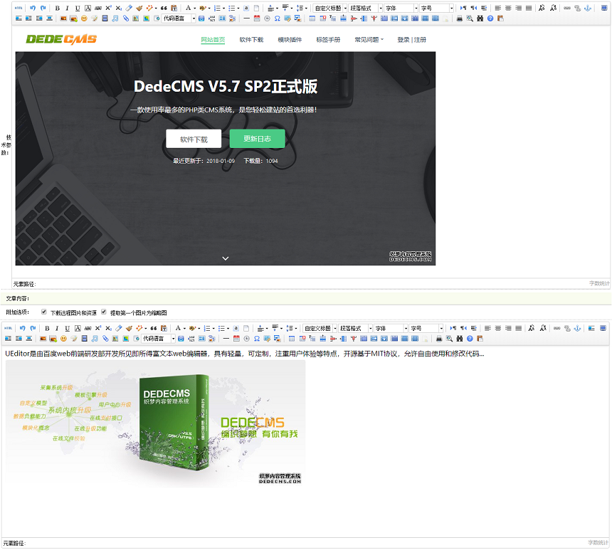 3、后臺-系統-系統基本參數-核心設置-Html編輯器 ,填寫ueditor