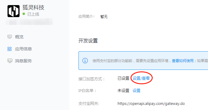 打開支付寶開放平臺 找到你創建的應用 點擊 應用信息