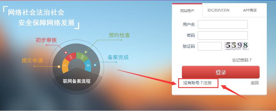 打開(kāi)http://www.beian.gov.cn/頁(yè)面,在登陸框下面有注冊(cè)選項(xiàng),如圖: