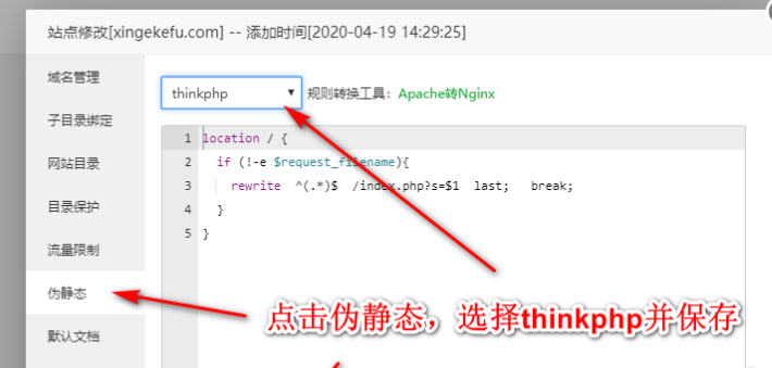然后偽靜態(tài)選擇 think PHP 如圖所示