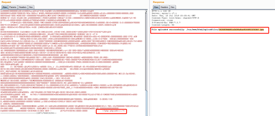 4、上傳一個圖片,burp抓包,修改數據包,在末尾添加<?php phpinfo();?>