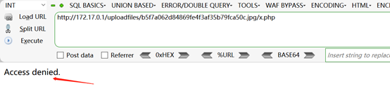 8、瀏覽器再次訪問http://172.17.0.1/uploadfiles/b5f7a062d84869fe4f3af35b79fca50c.jpg/x.php,發現被拒絕,說明漏洞被修復