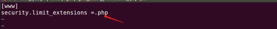 3、 最重要的一點是php-fpm.conf中的security.limit_extensions配置項限制了fastcgi解析文件的類型(即指定什么類型的文件當做代碼解析),此項設置為空的時候才允許fastcgi將’.png’等文件當做代碼解析。