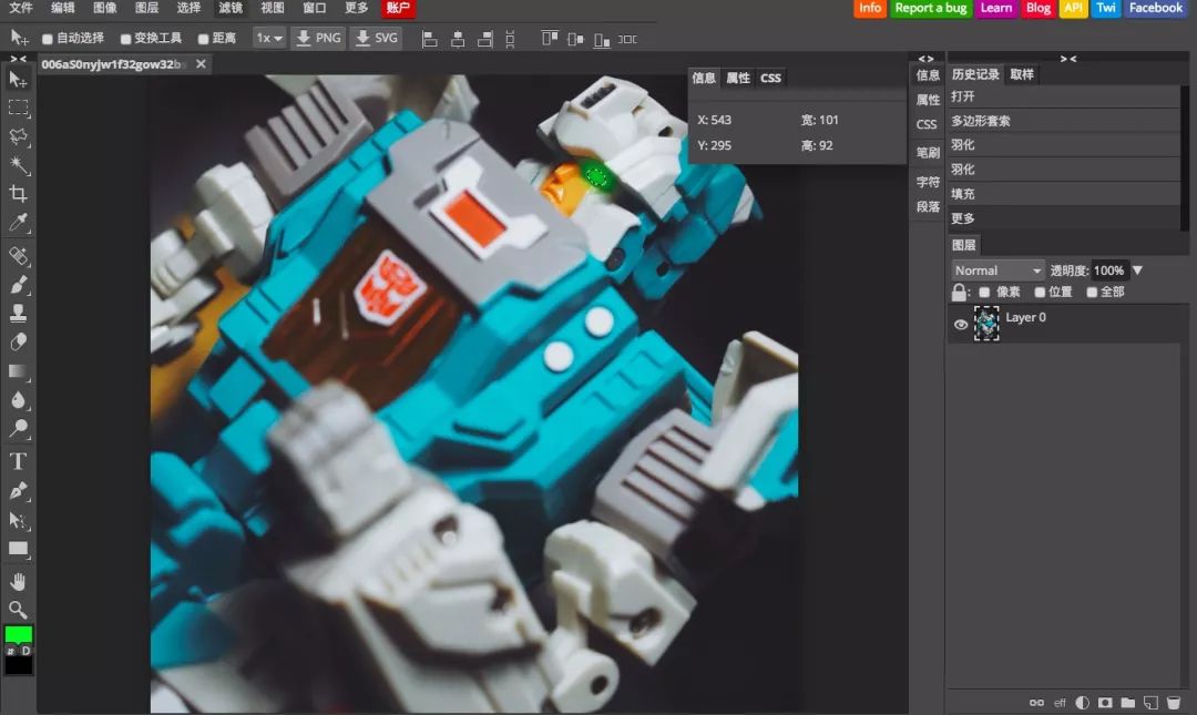 使用方面,Photopea 的操作和Photoshop其實很相似。它們有相似的功能排布,以及相似「快捷鍵」操作。基本操作,如使用「魔術棒」選中區域時,Photopea的操作響應速度其實還可以。只要圖片不太大的話,處理起來其實也還 OK。快捷鍵方面,因為要和瀏覽器的快捷鍵分開,所以部分按鍵組合會有些不一樣。