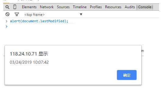 然后在控制臺里面輸入:alert(document.lastModified); ,按回車鍵后查看最后修改時(shí)間并記錄。