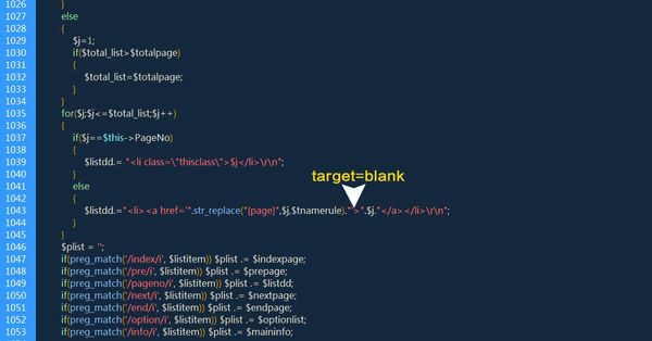 $listdd.="<a href='".str_replace("{page}",$j,$tnamerule)."'target=blank>".$j."</a>\r\n";